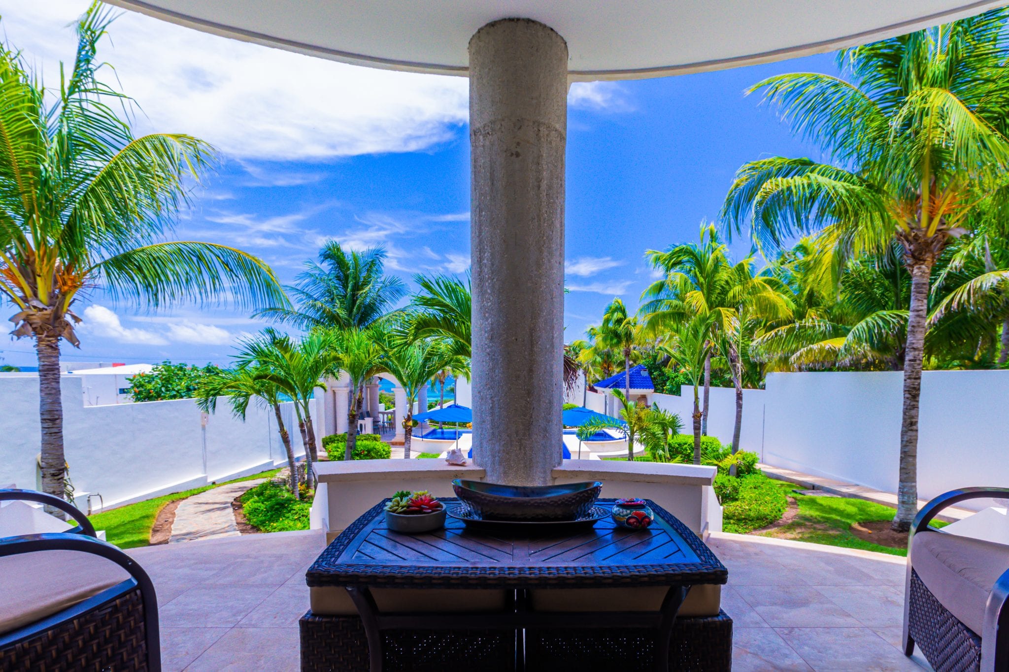The pergola is a nice recent addition to the estate. There is a 1/2 bath for easy access so you don’t have to go all the way back to the Main Villa. There is also seating for 5 and plenty of shade.