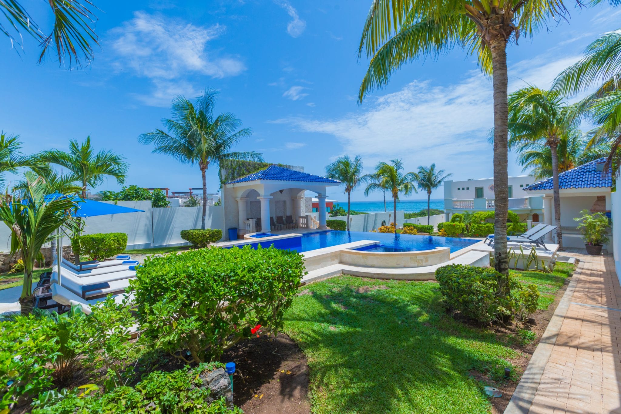 The outdoor covered BBQ + 1/2 Bath is an amenity that truly makes Casa De La Palmas stand out. Enjoy the poolside bath for convenience. Vacation rentals in Isla Mujeres Mexico are just spectacular!